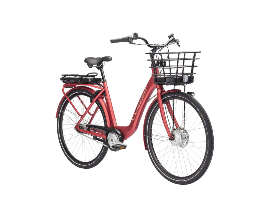 Allt är snyggt inbyggt i en 7-växlad damcykel av modernt snitt, med lågt insteg, fotbroms bak och skivbroms fram. Displayen på styret håller dig uppdaterad och cykelns batteri sitter i pakethållaren, som dessutom har en smart funktion där du enkelt klickar av och på en väska eller korg. Cykelkorg framtill ingår, liksom stöd, godkänt lås och belysning.