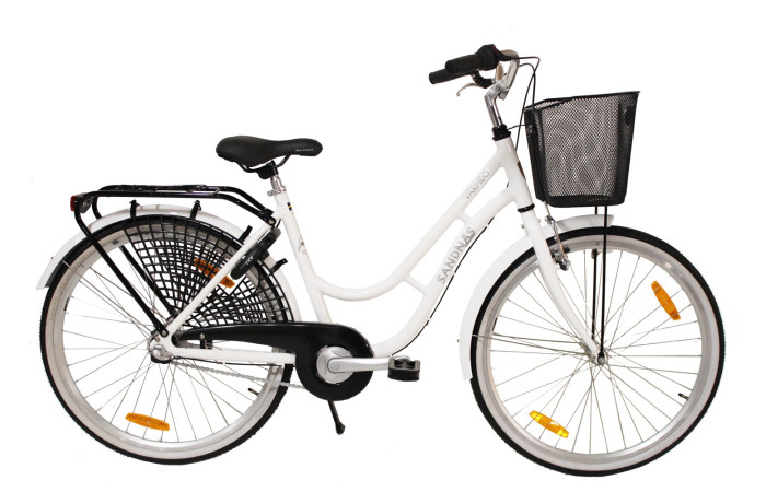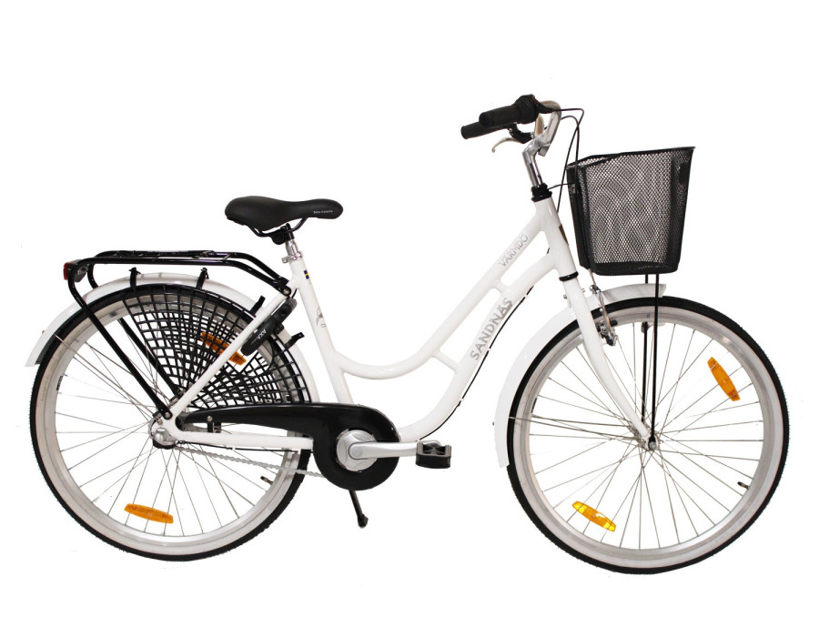 komplett med korg fram,ljus fram+bak och även Godkänt Axa plus lås ingår.