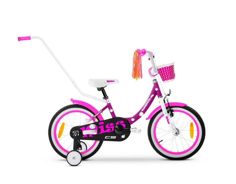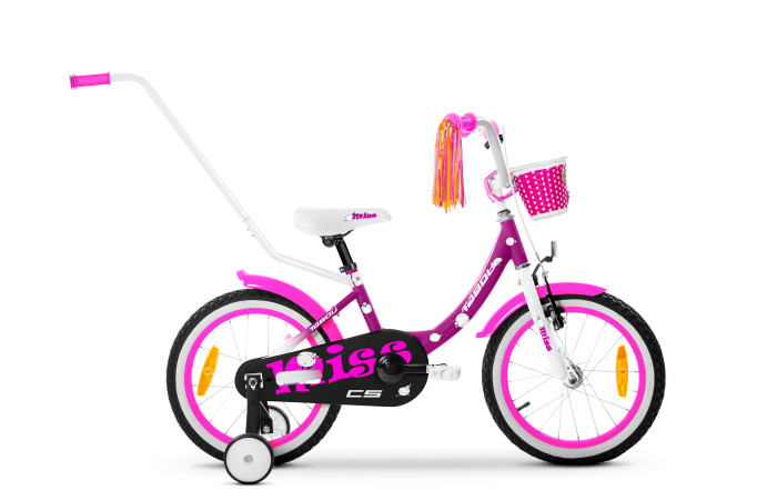 Ramen har ett lågt insteg som gör det enkelt att kliva på och av, och geometrin ger en upprätt och bekväm sittställning som passar bra för både lek och vardagscykling. Cykeln är utrustad med v-bromsar fram och bak som styrs med handbroms – precis som på större cyklar – vilket hjälper barnet att utveckla sina färdigheter och bli en säker cyklist.