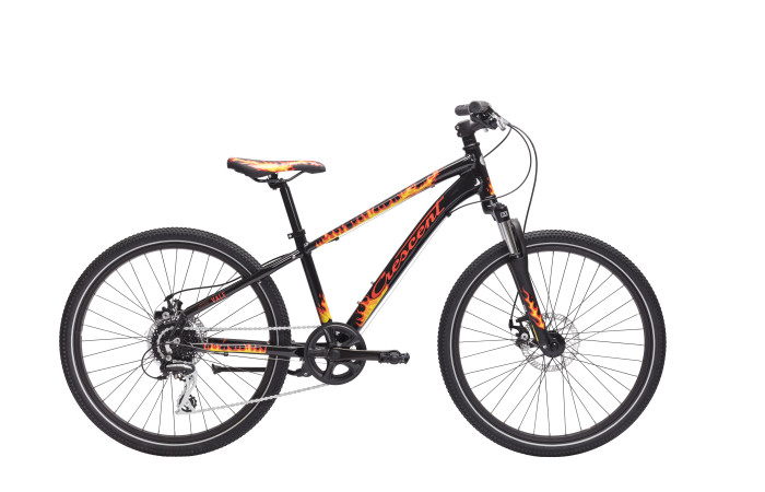 Sugen på skogsäventyr? Vale 24" passar den yngre killen eller tjejen som längtar efter en mountainbike! Den dämpade SunTour-gaffeln förenklar hårda tag i ojämn terräng och gör körning över stock och sten till en barnlek! Ramen i aluminium har en geometri som liknar våra fullstora MTB. Växelgruppen har kvalitetskomponenter från Shimanos Acera-mix som med 8 växlar ger dig möjlighet till både branta lutningar och fartfyllda spurter. Vale har utvecklats med kvalité och säkerhet i fokus. Material och kompo¬nenter har valts för att tåla hårda tag i ett svenskt klimat, däcksidorna har fått reflexsidor för maximal synlighet. Skivbromsar fram och bak. F